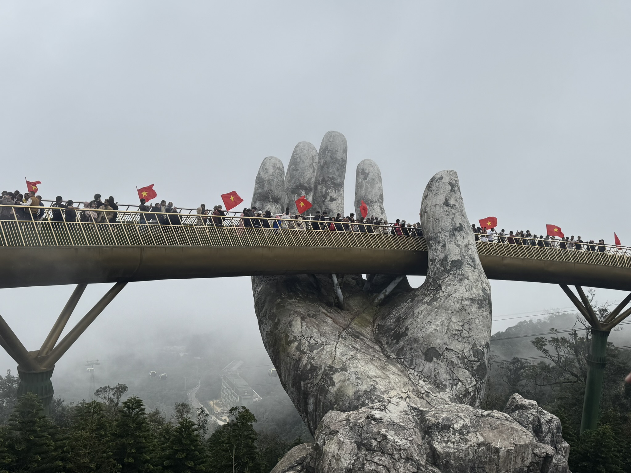 This is at Ba Na Hills. It’s a pretty iconic bridge in the area! It’s on top of a mountain. People get here by cable car, and as you go up the mountain, you go up into the clouds/fog! Pretty cool!