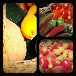 How do you like our 2012 harvest? (one weekend’s portion anyway)! This year we my husband, tried something NEW and planted cantaloupe. The TWO cantaloupe he’s got so far have been DELICIOUS! The hubby takes care of the vegetable garden, and I take care of the flower gardens. So really, this is his harvest, but the entire family gets the benefits. YUM!