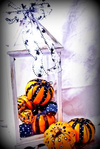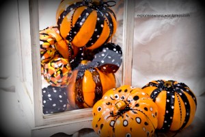 These pumpkins came from the dollar store, of course! Then all I did was rip some halloween-ish fabric in strips and modge podge away. My poor birdhouse has been sitting empty for months….so I’m happy to finally have something cute to put it in 🙂