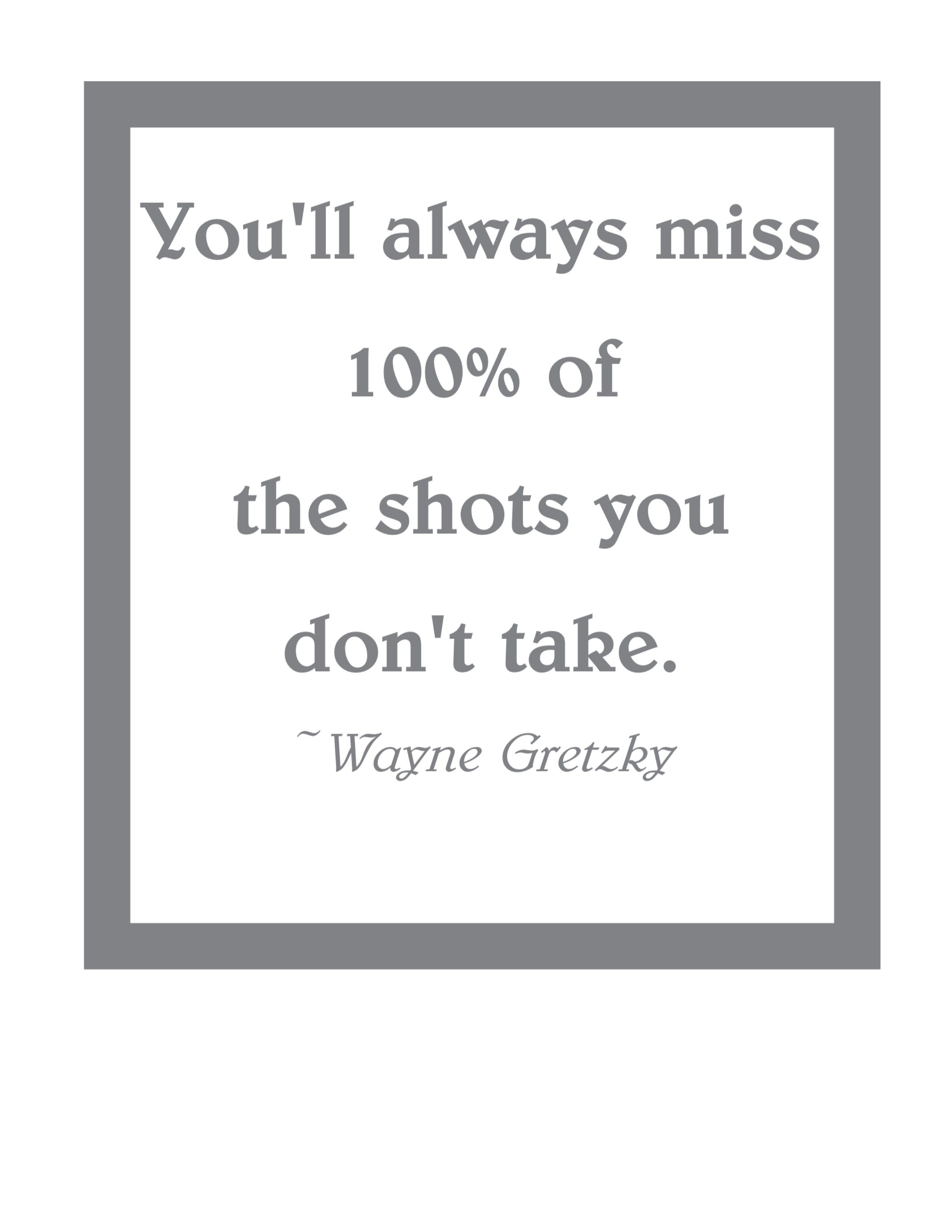 I so agree with Wayne Gretzky! There’s been plenty of times in my life when I didn’t even try to make the shot….and I’ll never know if I would’ve scored or not. Lesson learned. Explore Newness!…take the shot! Maybe it’ll be all net…maybe an air ball…but take the shot!