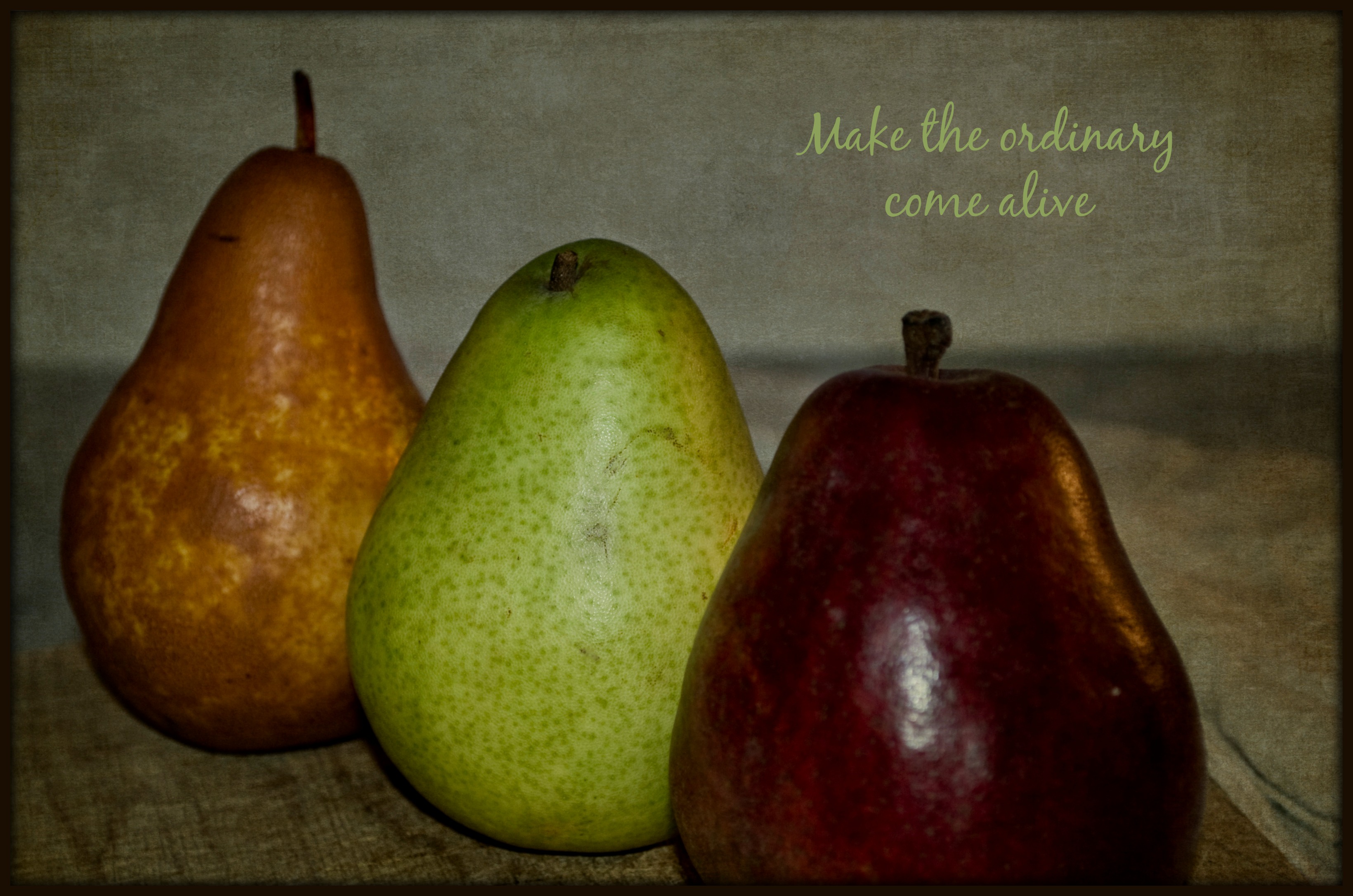 Happy Sunday! I’m really, really, REALLY late to Kim Klassen’s ‘Simple Pear’ link up. Too late to link up…but I saw so many beautifully simple pear photos, that I was totally inspired! I just had to find time to make it to the market for pears. :o)