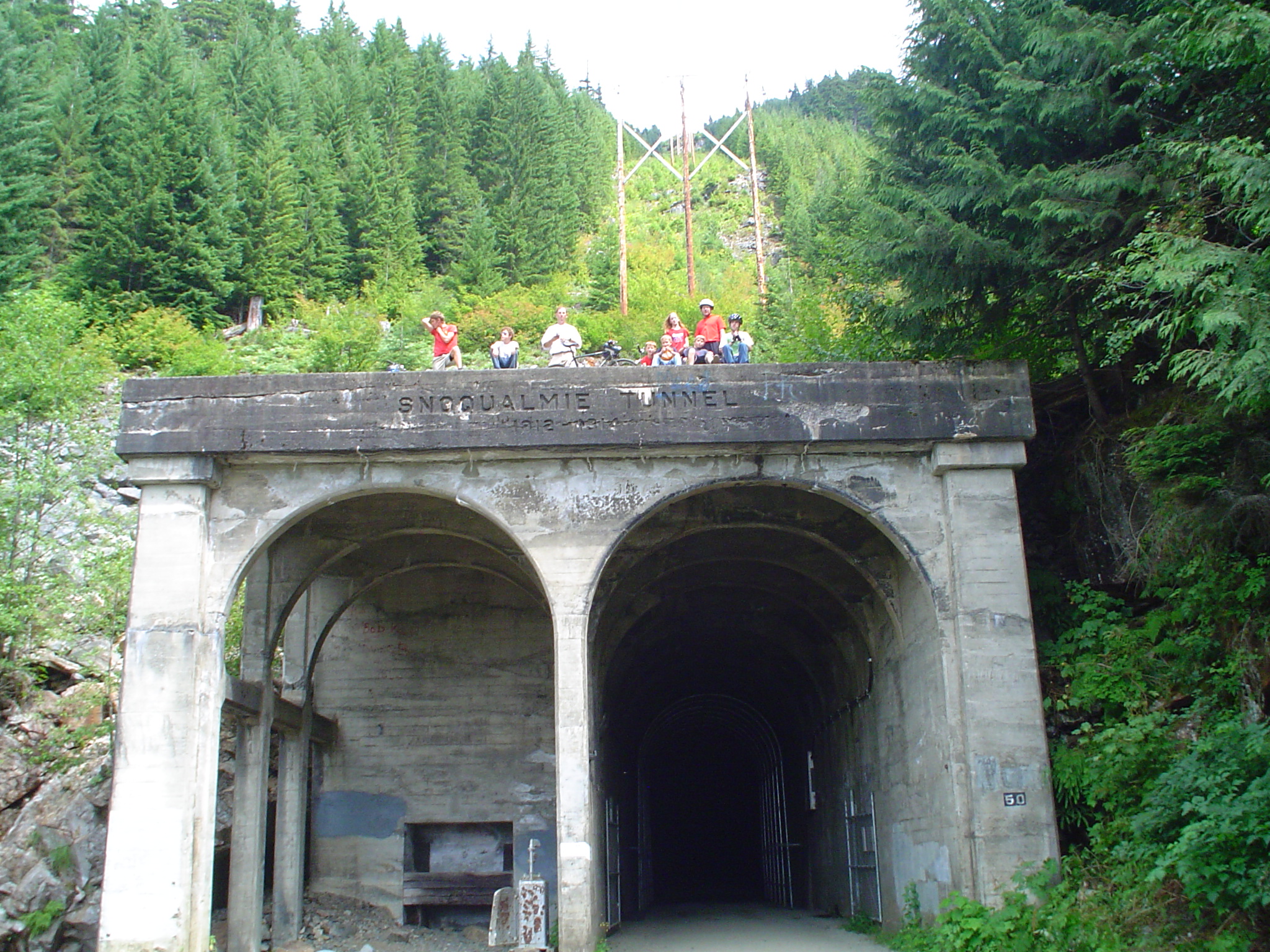 Our extended family had a family reunion, oh, about a decade ago now! For one of the activities, we rode our bikes through the Snoqualmie Pass tunnel. If I remember correctly, the tunnel is about 2 miles long. Before entering the tunnel, I had everyone stop and pose for this photo: