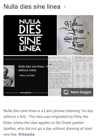 At the university where I work, we get a monthly newsletter-type email. This month it introduced me to this phrase, which inspired me to keep up on my 23 for 2023 list I made, and the many other NEW things or goals I want to do this year. I think I’ll make myself a “Don’t break the chain” chart with Nulla dies sine linea as the title.
