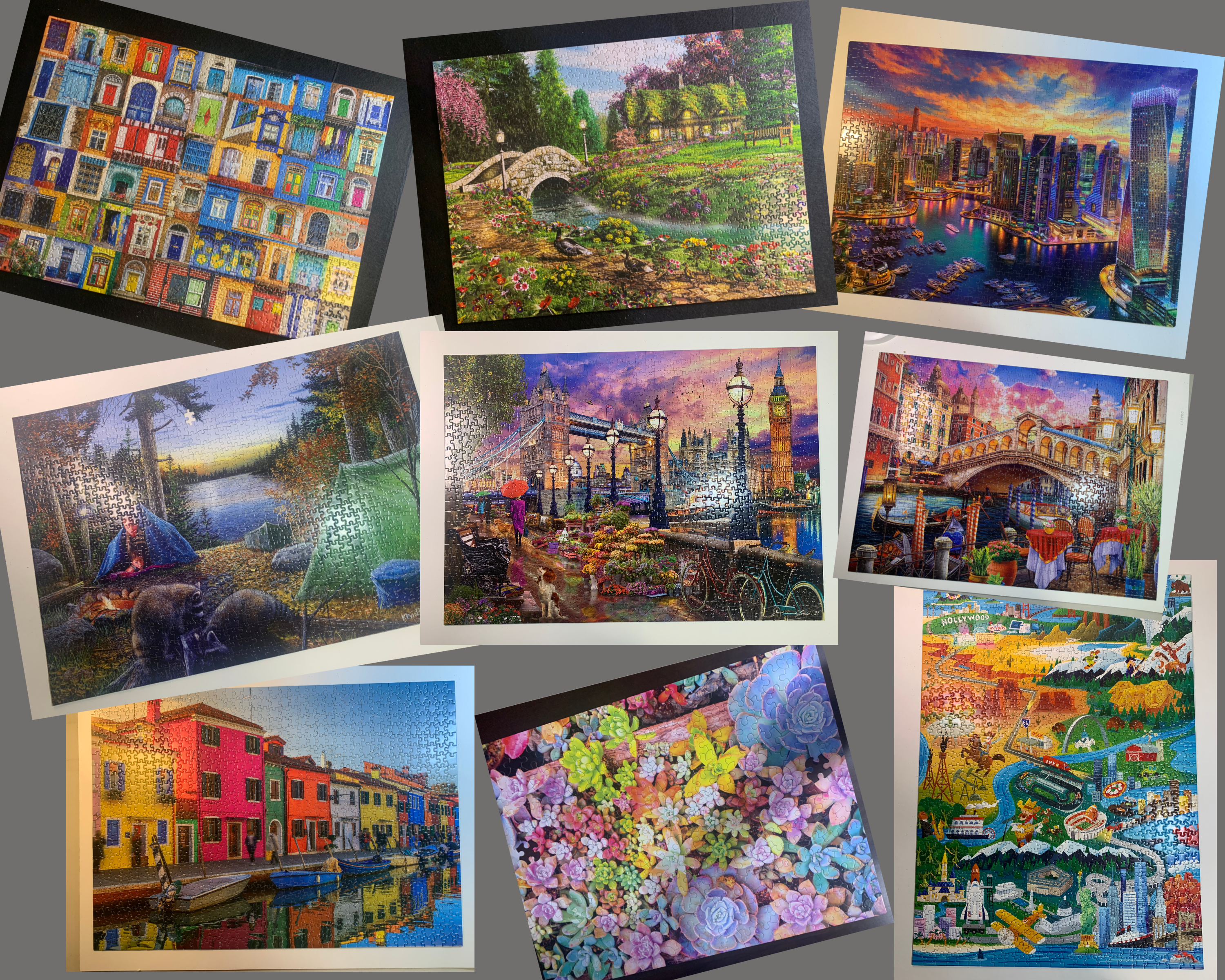 This year I started snapping pics with my phone when I finish a puzzle. Here are all the puzzles I’ve finished since January: