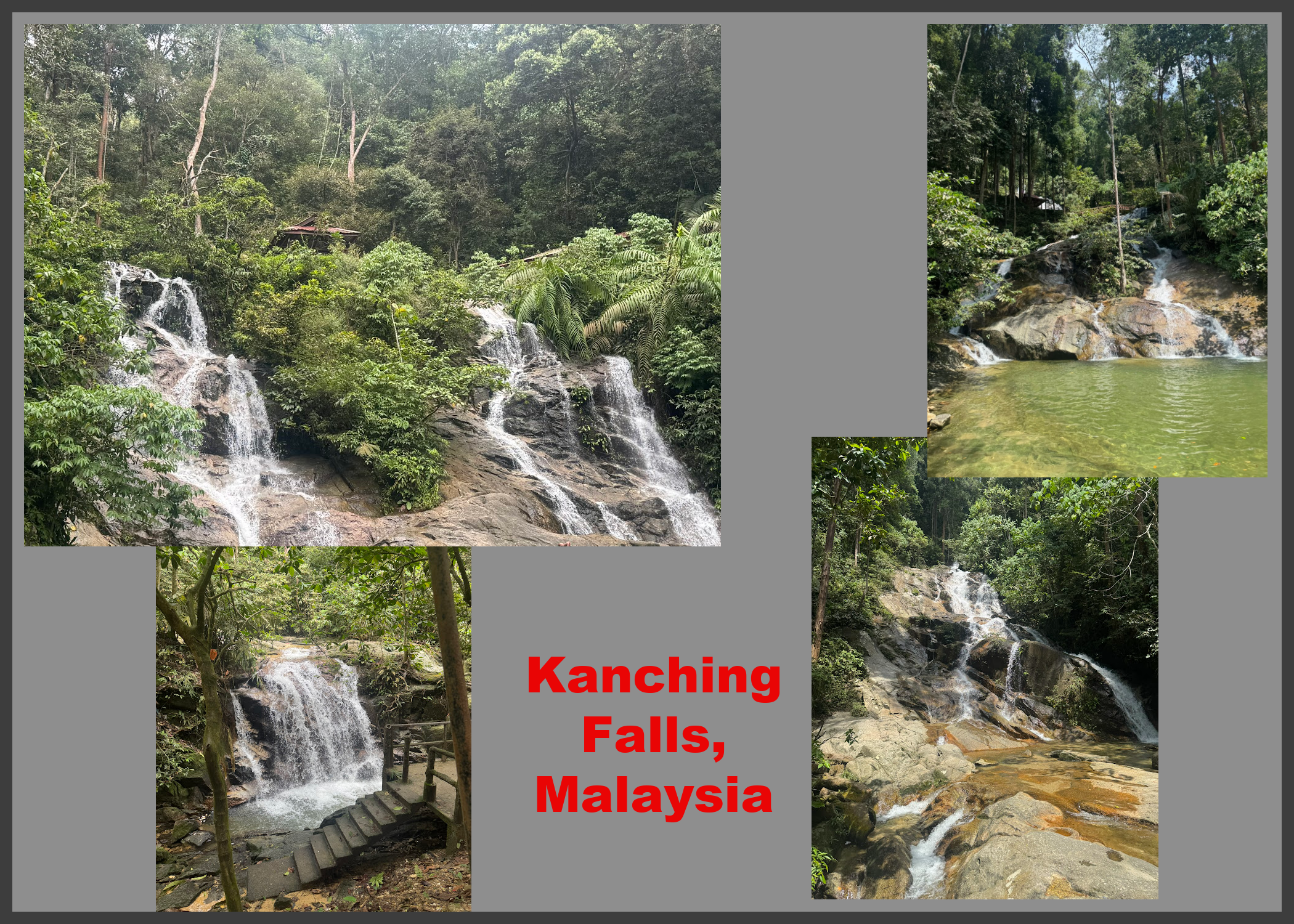 First of all, we visited Kanching Falls in Malaysia, so I’m updating my Waterfalls Bucket List. These falls have 7 tiers, but some we didn’t think were worth a photo, haha!