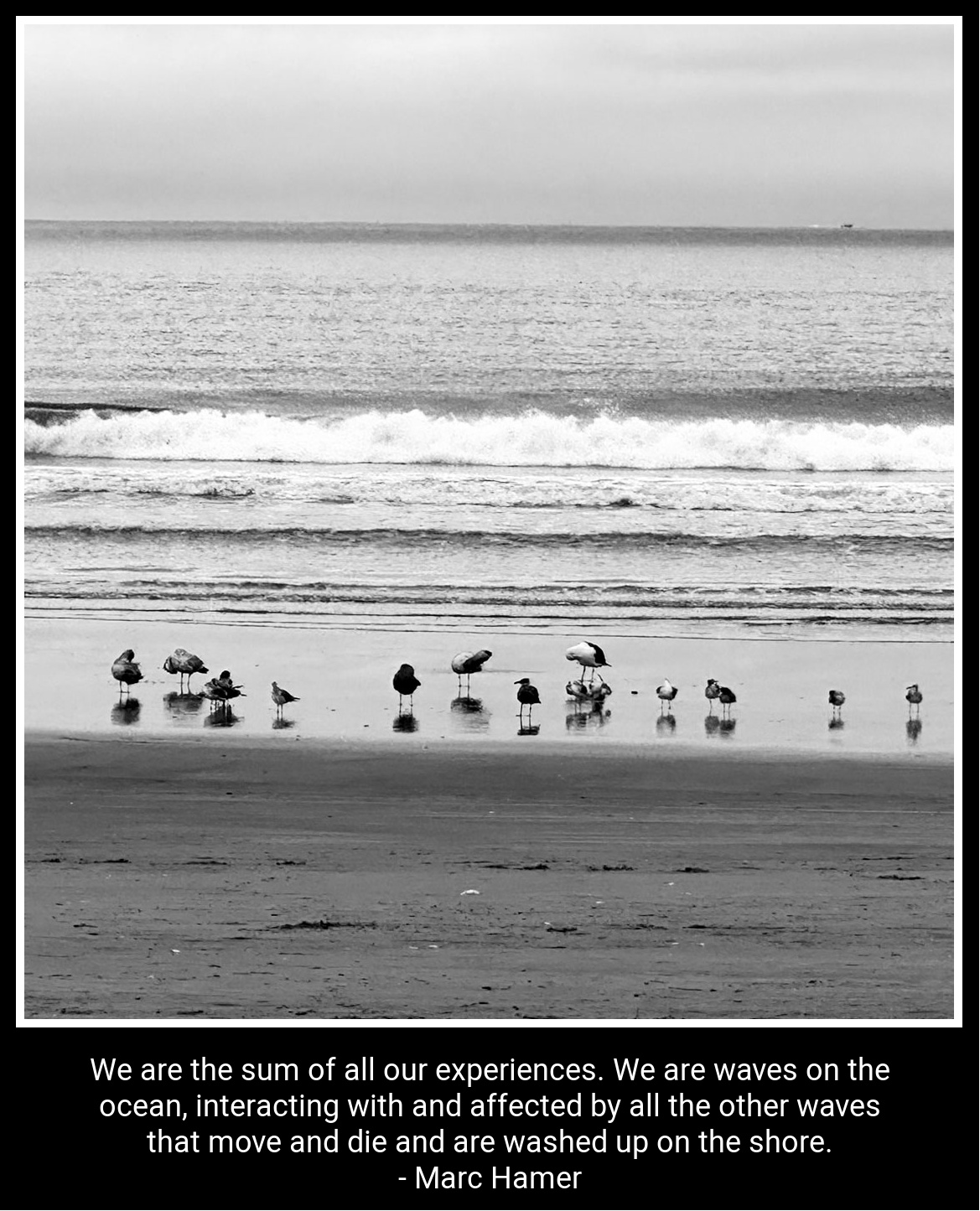 Happy Thursday. I fell in love with all the layers in this photo, taken recently in Newport, Rhode Island. The sky…the horizon…the ocean…the waves (in all their various strengths and sizes)…the birds, the wet sand, the drier sand. Therefore, I would edit this quote just a bit… I’d add that we are the sum of all the layers and layers of our experiences. Because I believe one experience wouldn’t be quite the same without a previous experience. It’s the layers of experiences, not the individual experience that make us what we are. What we will, eventually, become.