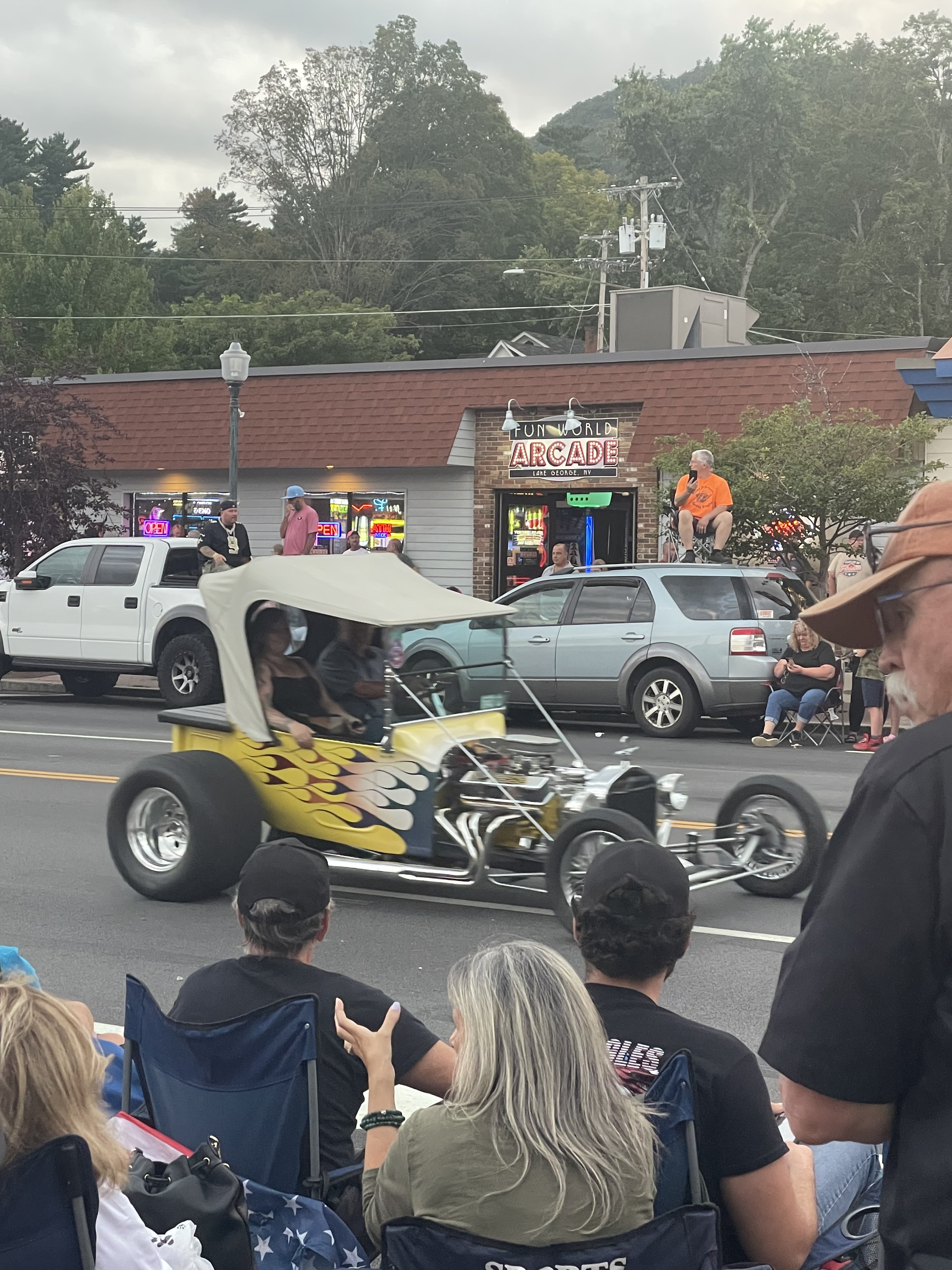 O: Old cars! When we were staying in Lake George, New York, we had no idea that there would be a national car show that weekend. So many antique cars and hot rods in town that weekend! We enjoyed the parade, with many of them showing off and revving their engines for the crowds.