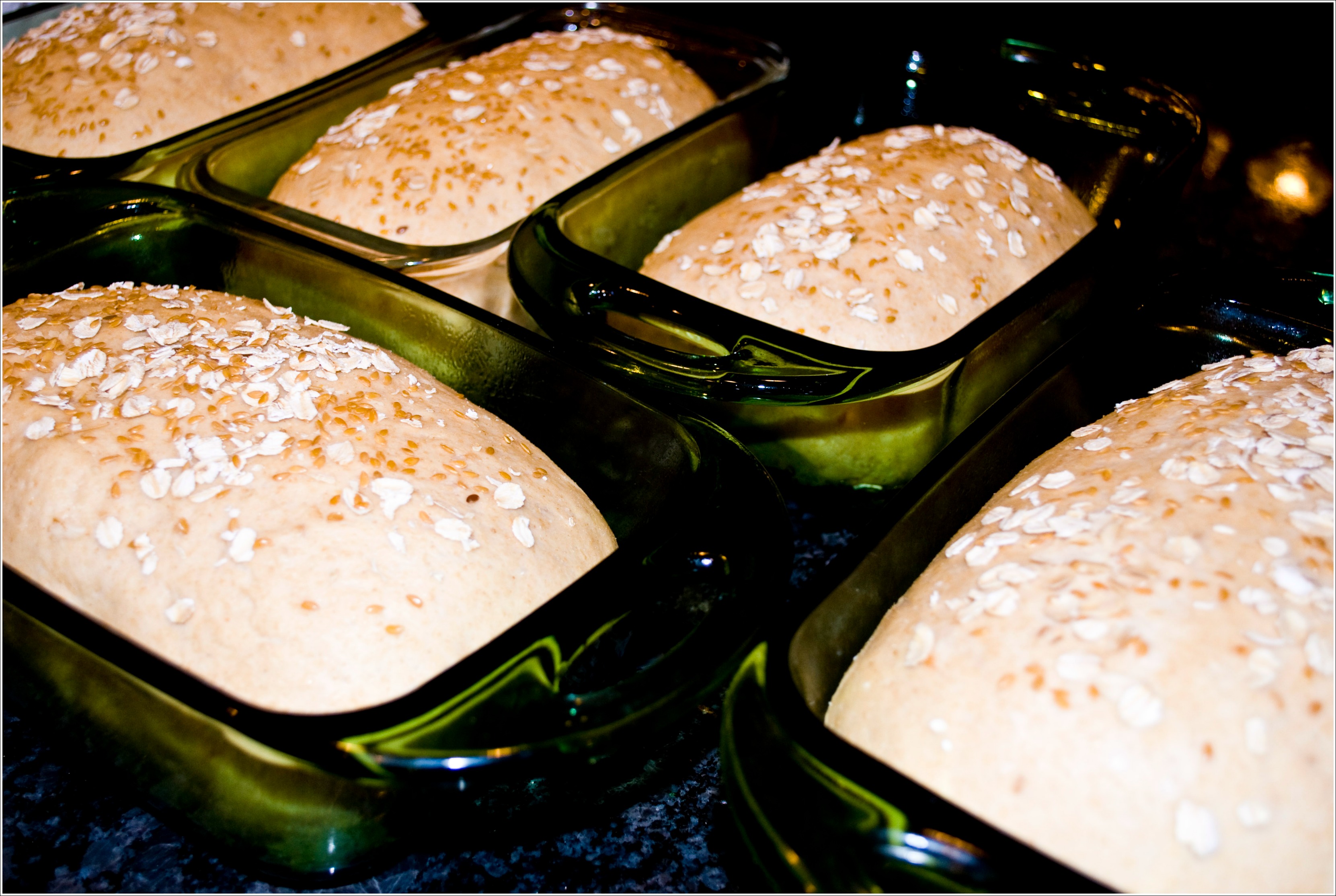 When garnishing bread with oats and flax seeds…it’s NOT enough to stick them on with melted butter before baking because the butter just dries up and most of the garnish falls off after baking. (Yes, I know this from experience :o) INSTEAD…(according to google)….use egg whites. Makes sense…there’s much more ‘glue’ in eggs than plain water or melted butter!!! I’ll try that next time and let you know my results.