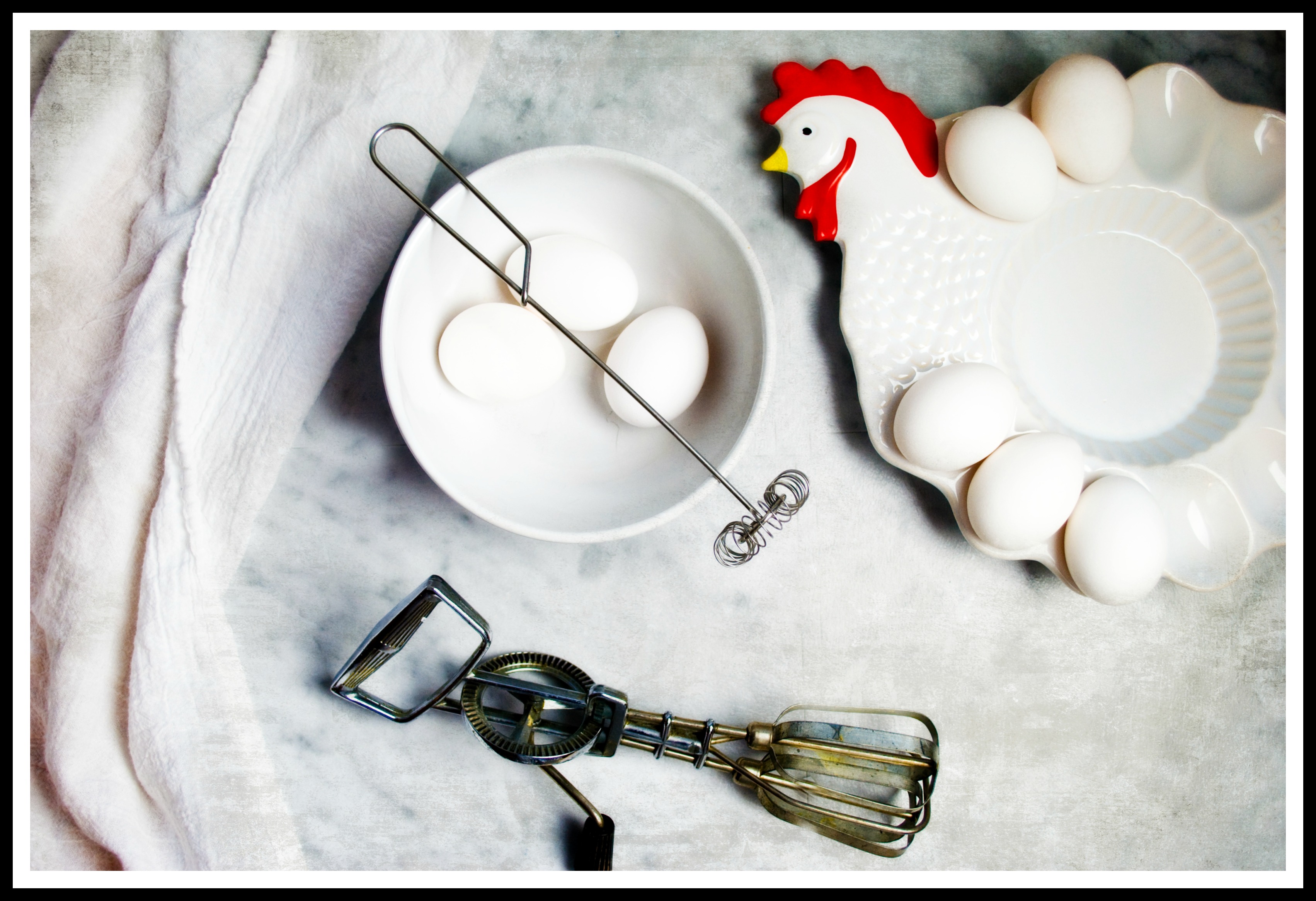 So, a few days ago, my son brought me these eggs that his chickens recently graciously produced. Aren’t they pretty? Although the very day before he brought me these, I had made a Costco run and bought the big 5-dozen package. Therefore, I need to make something that takes a LOT of eggs – right away.