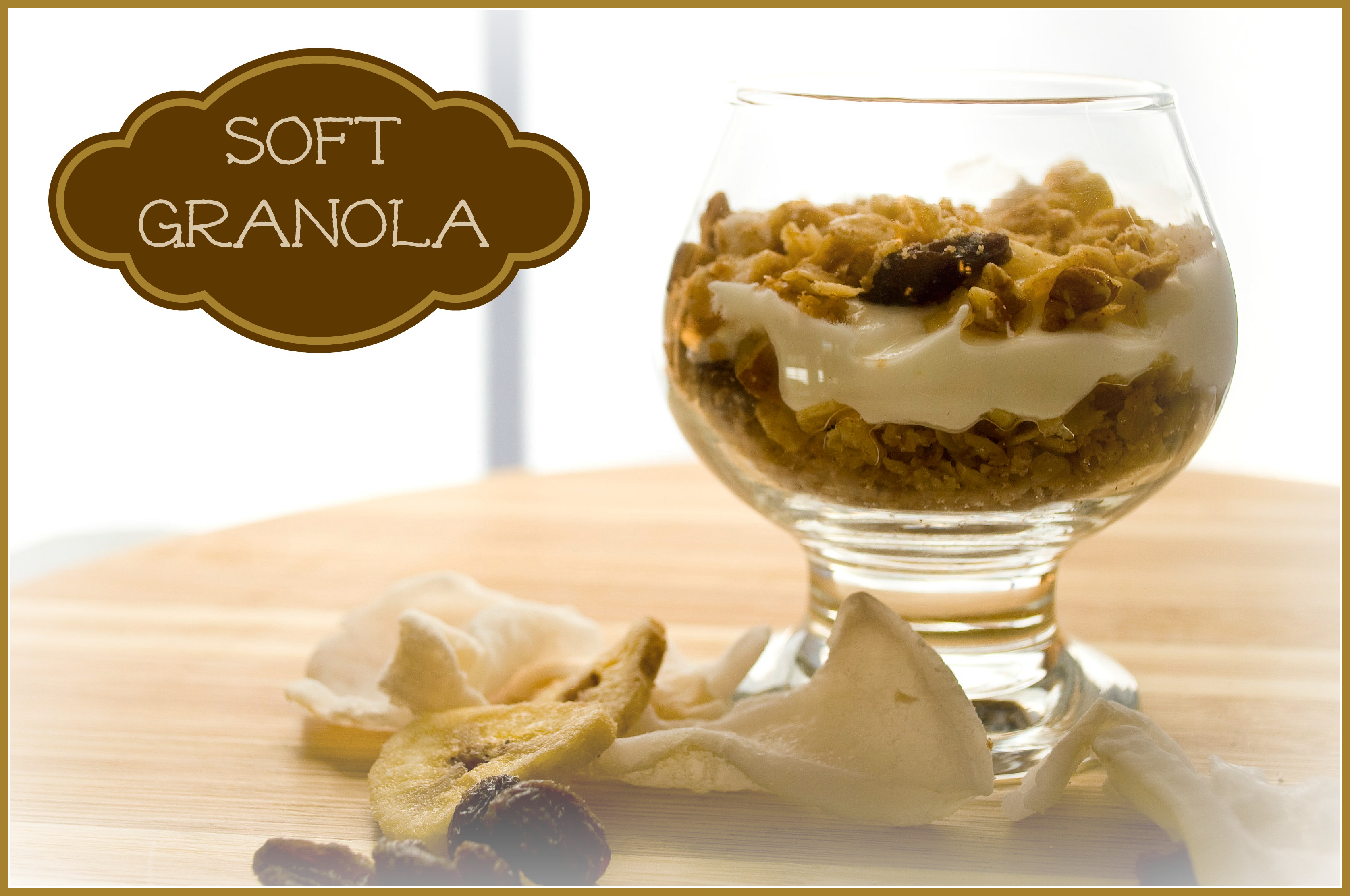 I’ll admit, there’s no easier breakfast option than cold cereal! BUT….talk about a highly-processed food! So I’m going to try harder to make my {sometimes rushed} first meal of the day a bit more healthful. Today I made a NEW big batch of Soft Granola. I like to make my own and add dried bananas, coconut flakes, raisins etc. When I add Greek yogurt, it’s even more yummy!