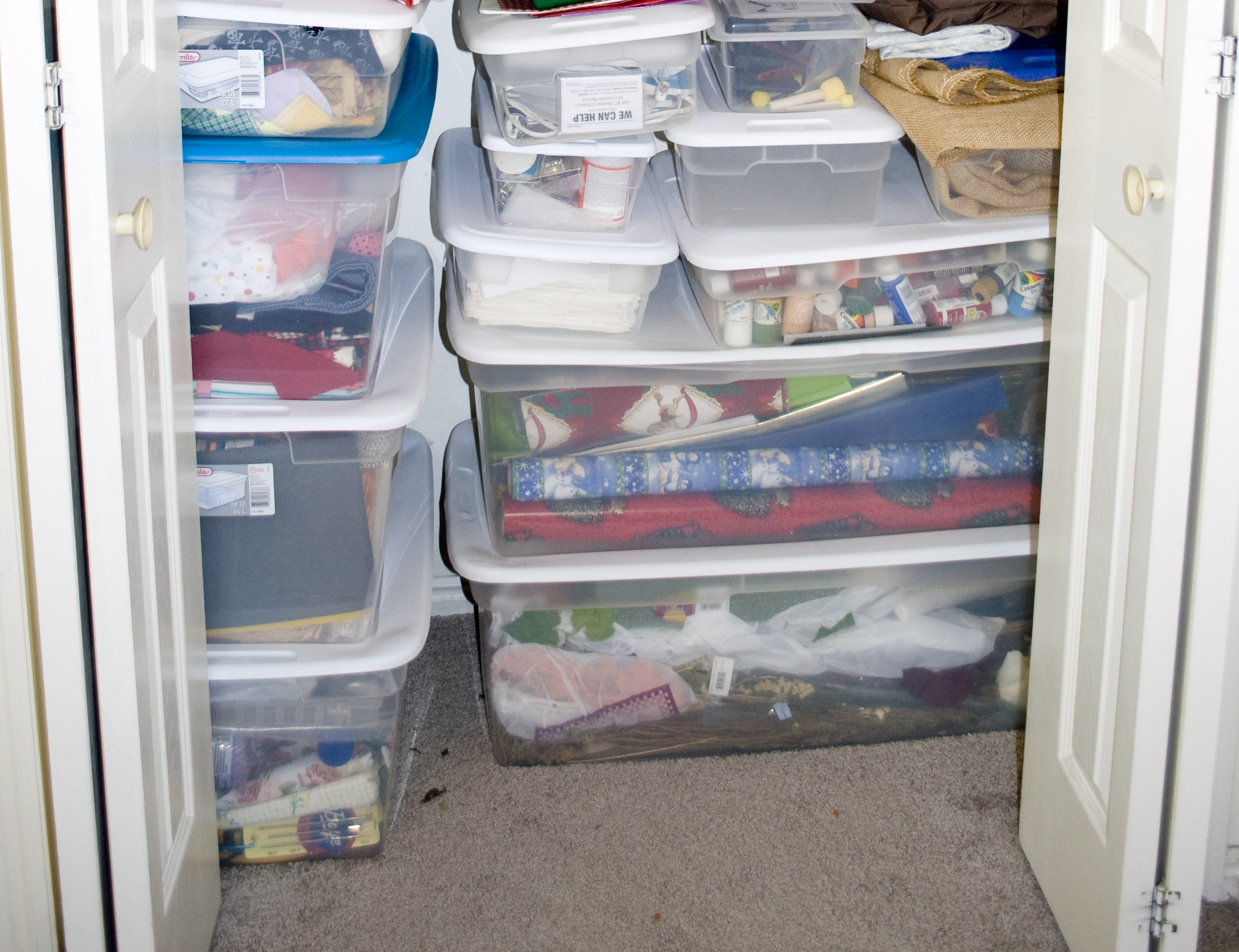 Sometimes I get those moments….those BFO moments! {BLINDING FLASH of the OBVIOUS} moments! I had one recently when I saw the brilliant (yet obviously efficient) way to store fabric at Smashed Peas and Carrots blog! Duh! Mini Fabric bolts! If it’s good enough for fabric stores to organize fabric on bolts, it’s good enough for me…and mini bolts work GREAT! I don’t sew a ton, so I don’t even have very much fabric to store, but it sure beats this mess (fabric previously stored in plastic bins among other craft supplies)