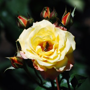 Look close! Do you see that cute bee working away inside this rose? I think this shot is one of my favorites…simply because I got lucky :o)