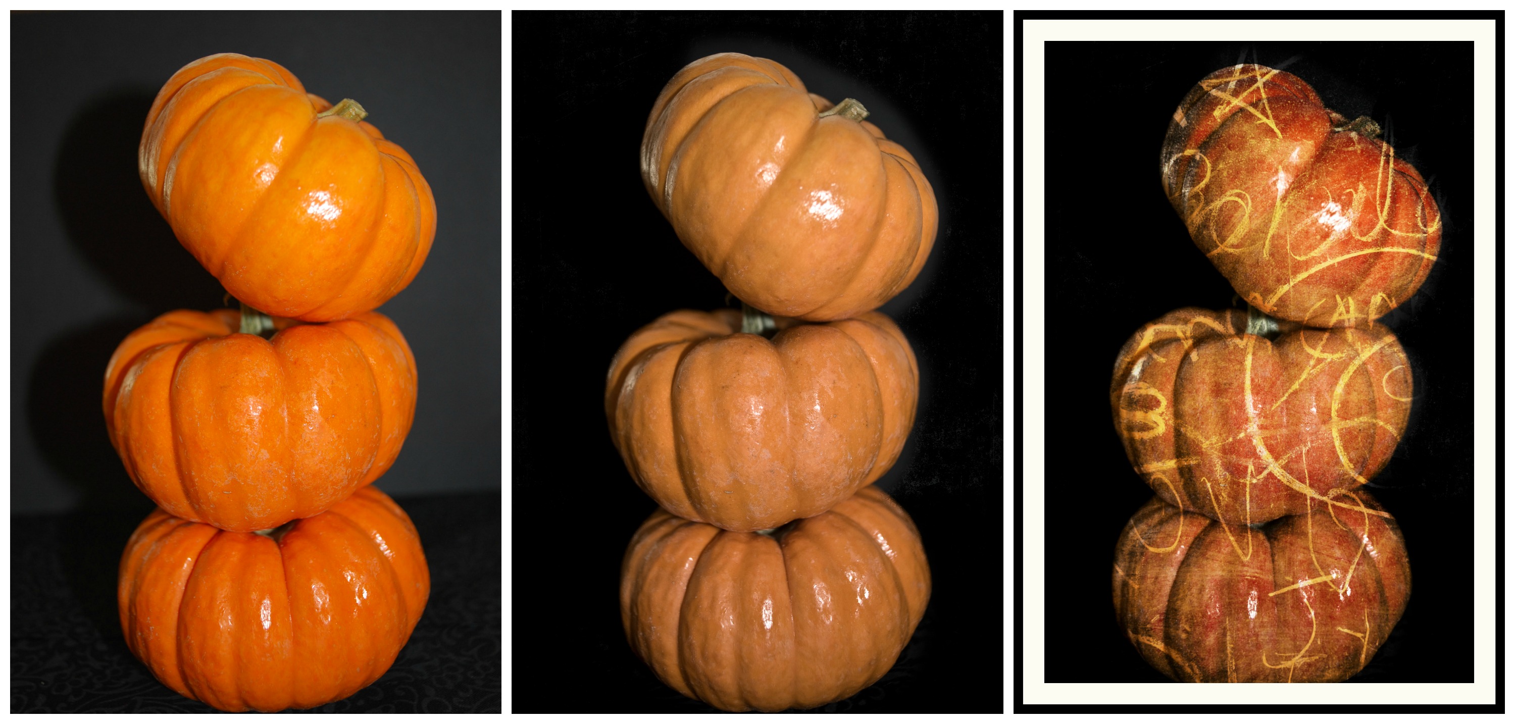 These pumpkins that I picked up from the store today went from this… to this…to this: